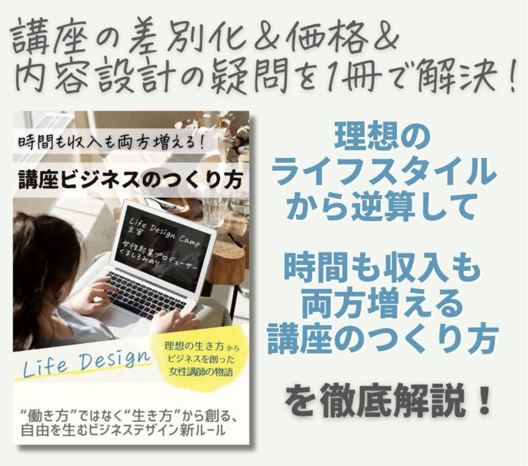 「理想の生き方」から「働き方をつくる」講座設計のすべてが詰まっています。
